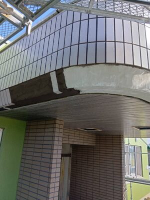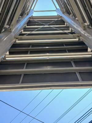 このように足場架けしなくても平場だけでも塗る事ができますので