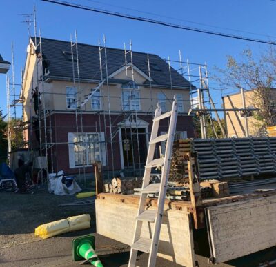 恵庭にある住宅の屋根塗装工事が始まりました🏠